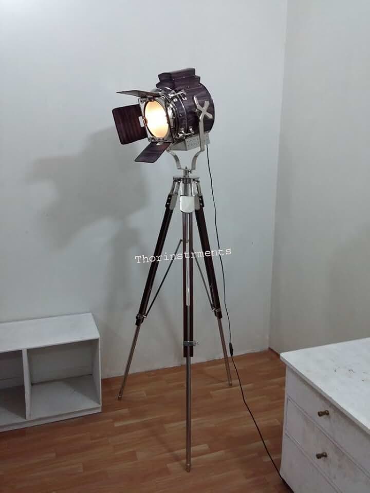 THOR INSTRUMENTS Vintage Designer Studio Floor LAMP Nautical SPOT SEARCHLIGHT Floor LAMP with Chrome Finish COVERD Antique Leather Rustic Vintage Home Decor Gifts