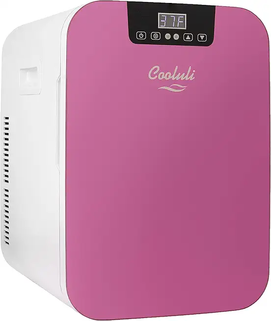 Cooluli 20L Mini Fridge For Bedroom - Car, Office Desk & College Dorm Room - Glass Front & Digital Temperature Control - Small 12v Refrigerator for Food, Drinks, Skincare, Beauty & Breast Milk (Pink)