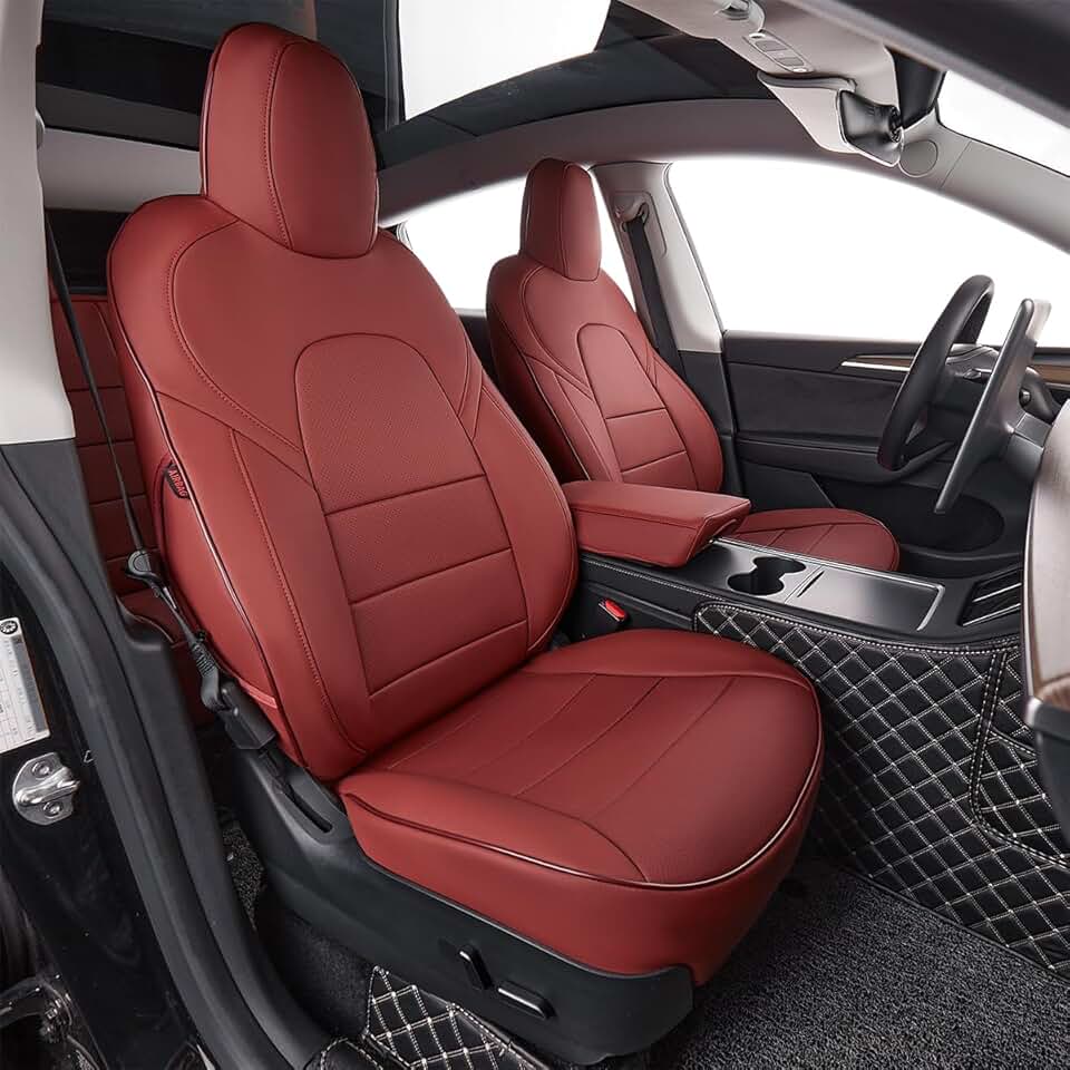 EKR Custom Fit Model Y Car Seat Covers for Select Tesla Model Y 2019 2020 2021 2022 2023 2024 (Only for 5 Seats Version) - Full Set,Leather (Burgundy)