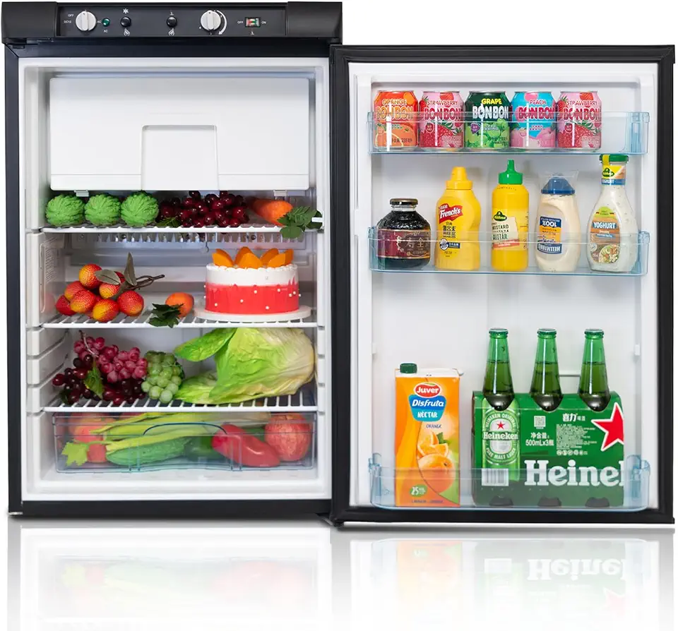 SMETA 3.5 Cu.Ft Off Grid Propane Refrigerator Freezer Combo, 3 Way RV Fridge, Camping Refrigerator For Semi-Truck Camper Travel Cabin Truck Outdoor Garage, Black