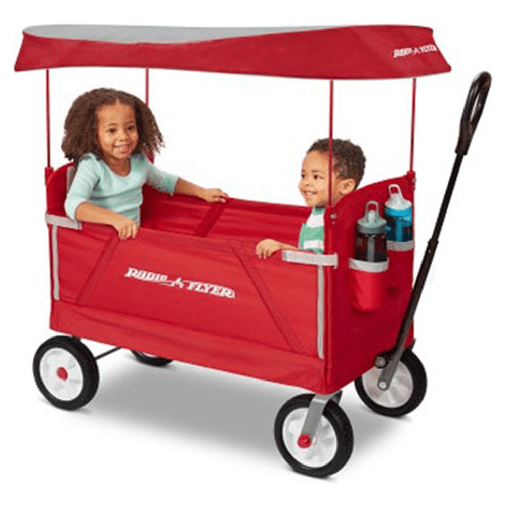 Radio Flyer, 3-in-1 off-Road EZ Folding Kids Wagon with Canopy, Puncture Proof Tires, Red
