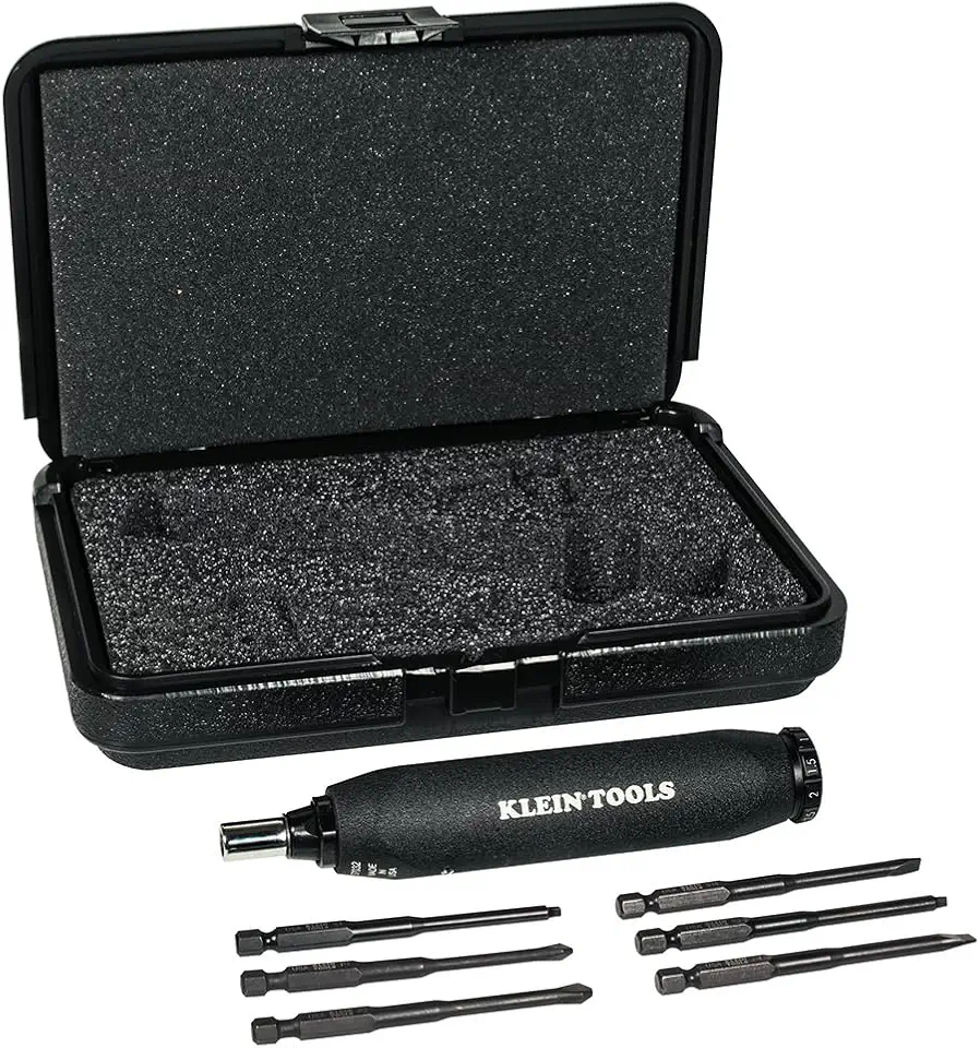 Klein Tools 57032 Screwdriver Set, Made in USA, Torque Screwdriver Kit with Phillips, Slotted, Square Bits, 1/4-Inch Nut Driver, Case Included, 6-Piece