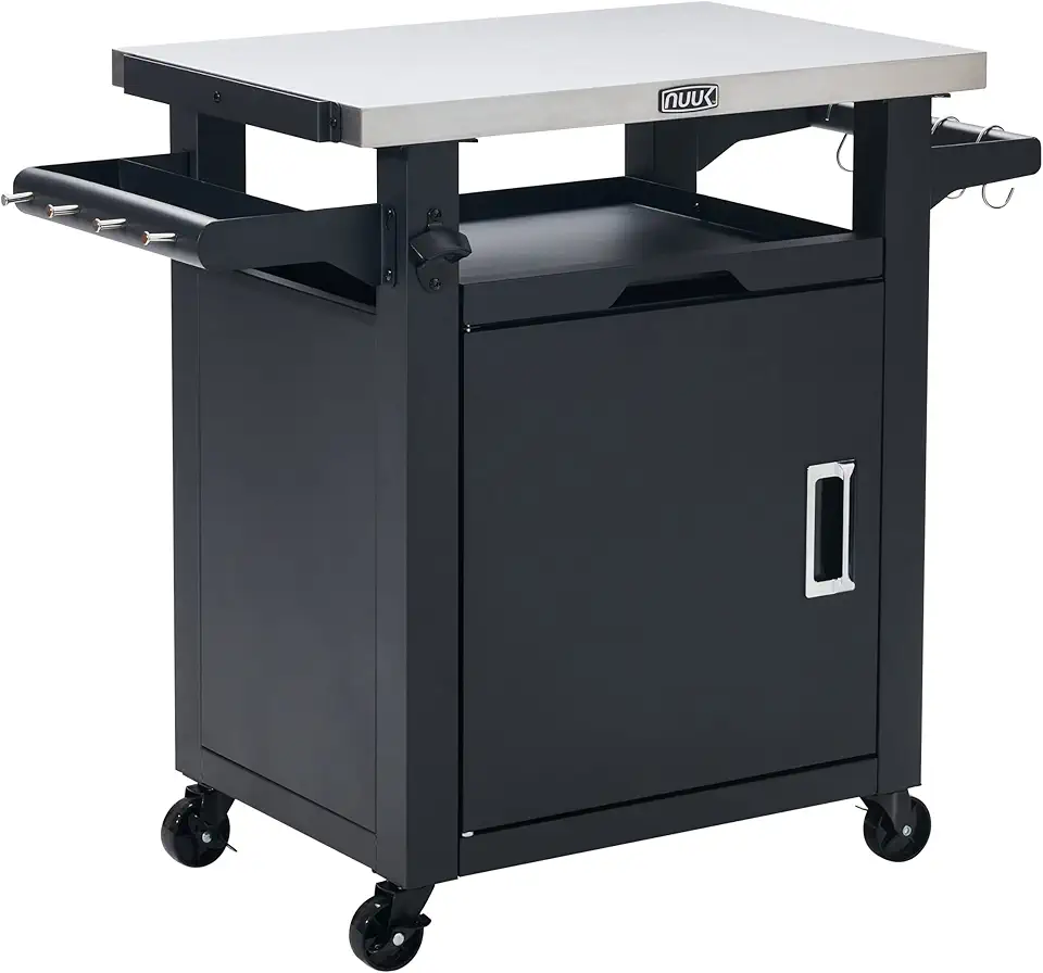 NUUK Deluxe Outdoor Rolling Prep Station, 20" x 30" Stainless Steel Kitchen Storage Island with Enclosed Cabinet and Storage Drawer