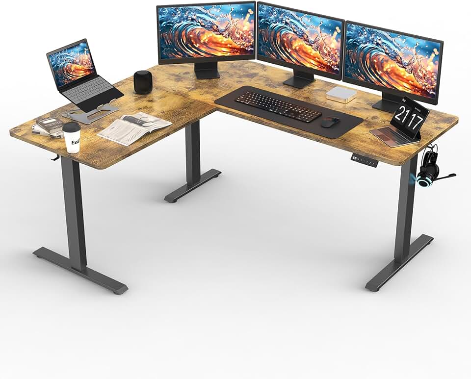 Upgrade Version 63 * 55 inch L Shaped Electric Adjustable Height Standing Desk, Corner Stand Up Desk, Sit Stand Computer L Desk for Gaming Office
