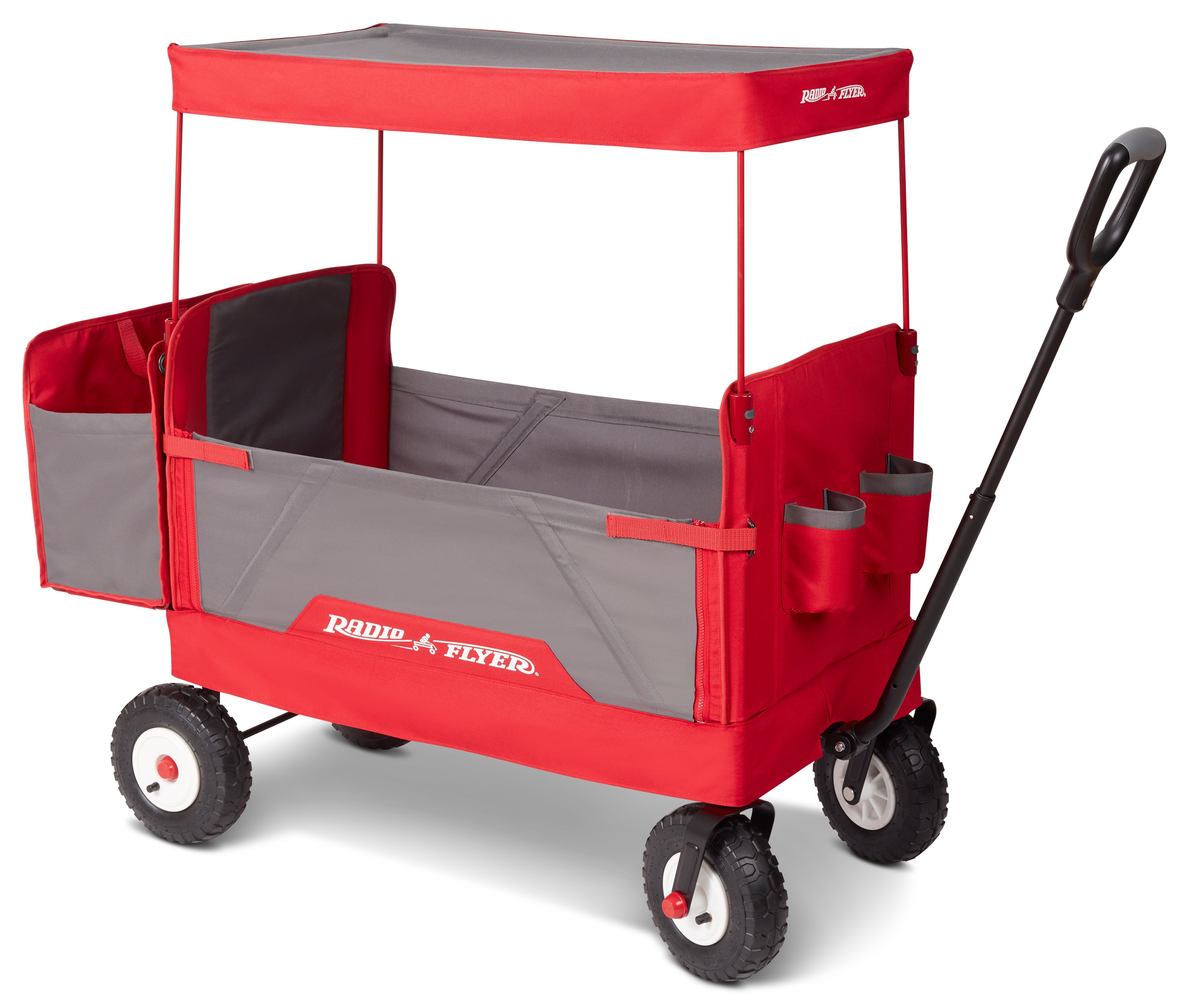 Radio Flyer, 3-in-1 All-Terrain EZ Fold Wagon with Canopy, Red and Gray, Air Tires