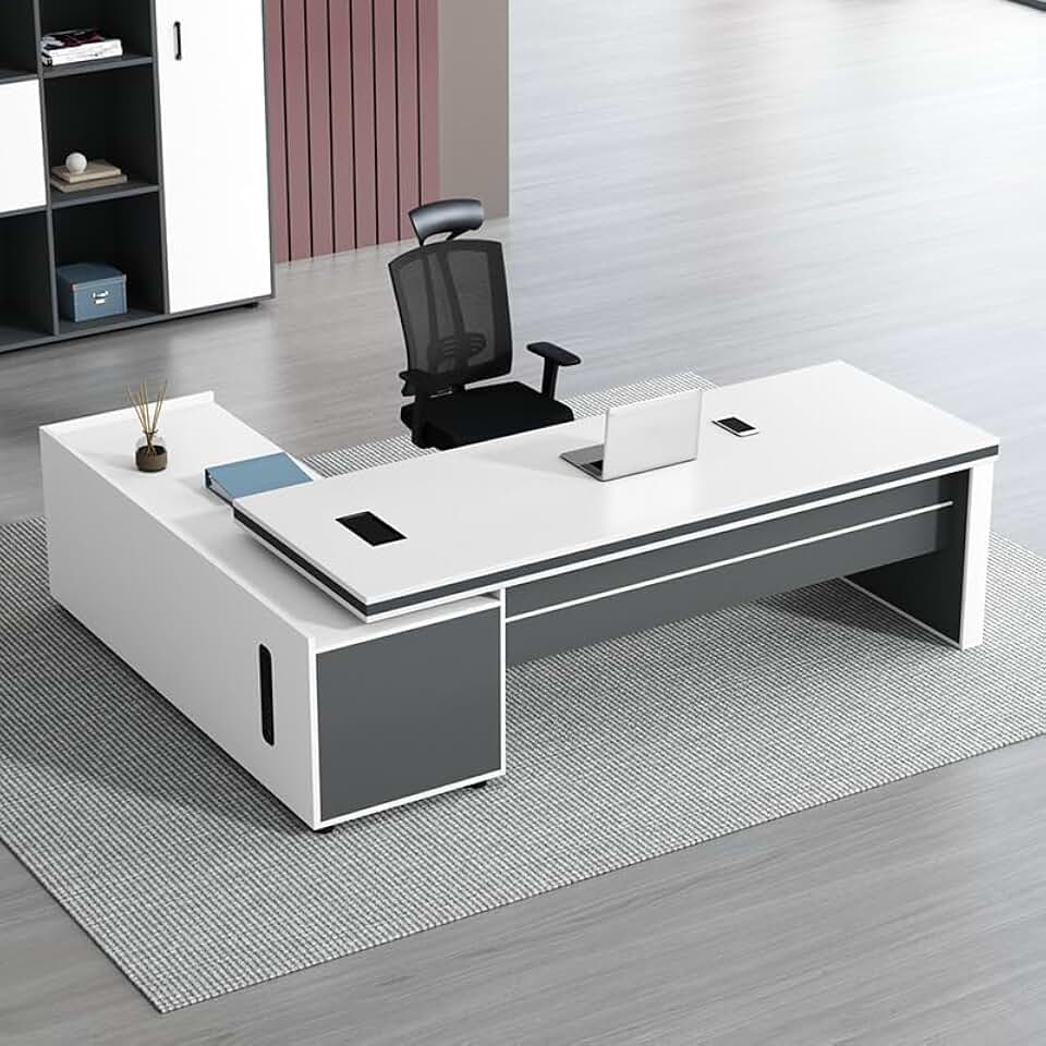 LITFAD Modern Office Computer Desk Wood Executive Desk with Locking Drawer, Side Storage and Cord Management, L-Shape Writing Desk Boss Table Office Furniture Without Chairs, 71" L x 63" W x 30" H