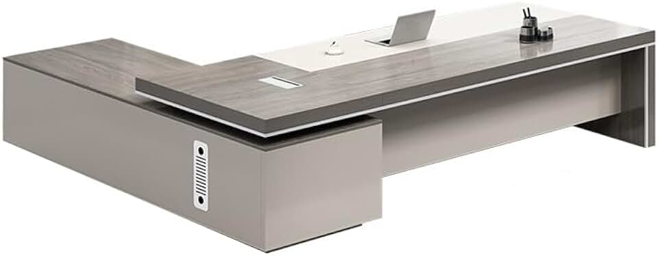 LITFAD L-Shaped Office Computer Desk with Secure Drawer, Side Storage and Cord Management Wood Executive Desk Modern Writing Desk Boss Table Office Furniture, Without Chairs, 63" L x 63" W x 29.5" H