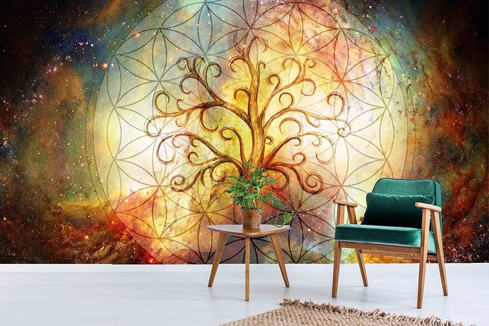 Myphotostation Flower of Life Peel and Stick Wallpaper Removable Self Adhesive Yoga Relax Wall Murals Tree of Life Wallpaper 204W x 114H Inches