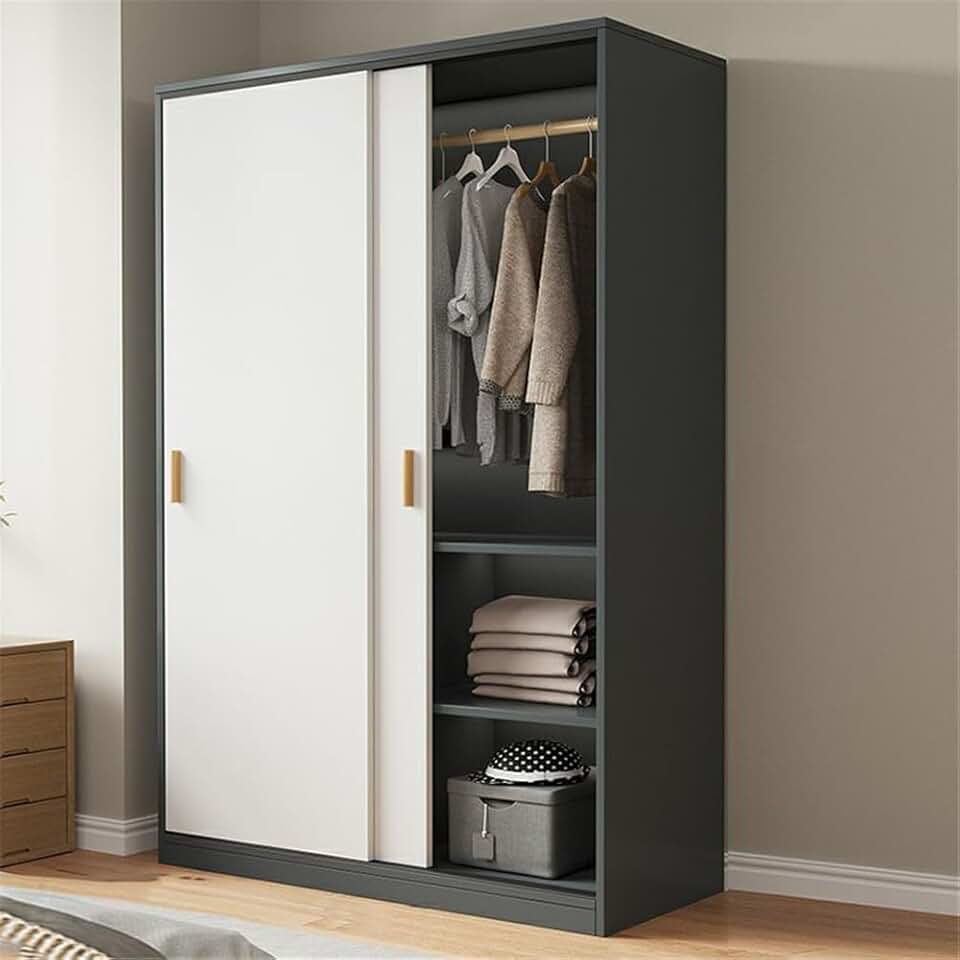 NIUYAO Solid Wood Family Wardrobe Closet Armoire Sliding Door Clothing Rod & Shelves Included Bedroom Dressing Room Storage Cabinet -White Black 39.5" L x 18" W x 71" H