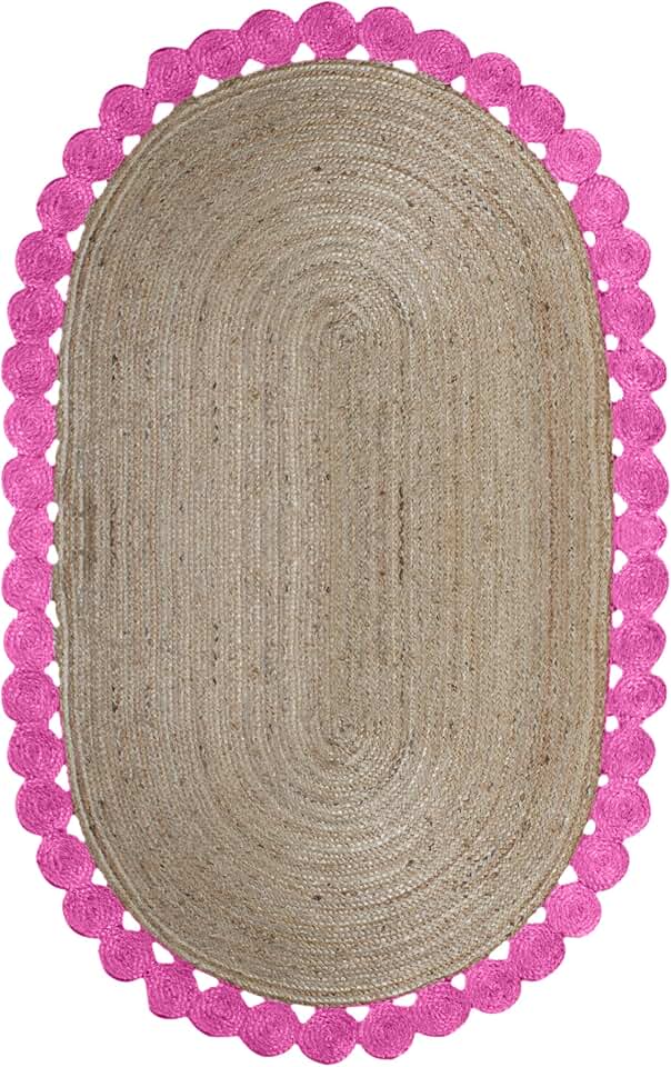 6x8 Area Rug Kilim Rug Oval Rug Pink & Beige Pattern Braided Jute Rug Indoor Outdoor Rug Flatweave Rug High Traffic Area Lake House Bedroom Dining Room Living Room
