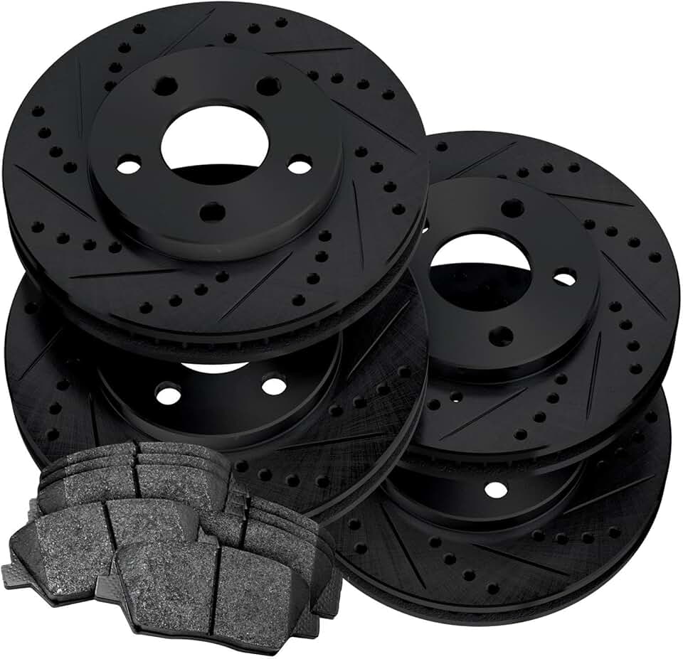 PowerSport Front Rear Brakes and Rotors Kit |Front Rear Brake Pads| Brake Rotors and Pads| Semi Metallic Brake Pads and Rotors |fits 2014-2019 Cadillac CTS