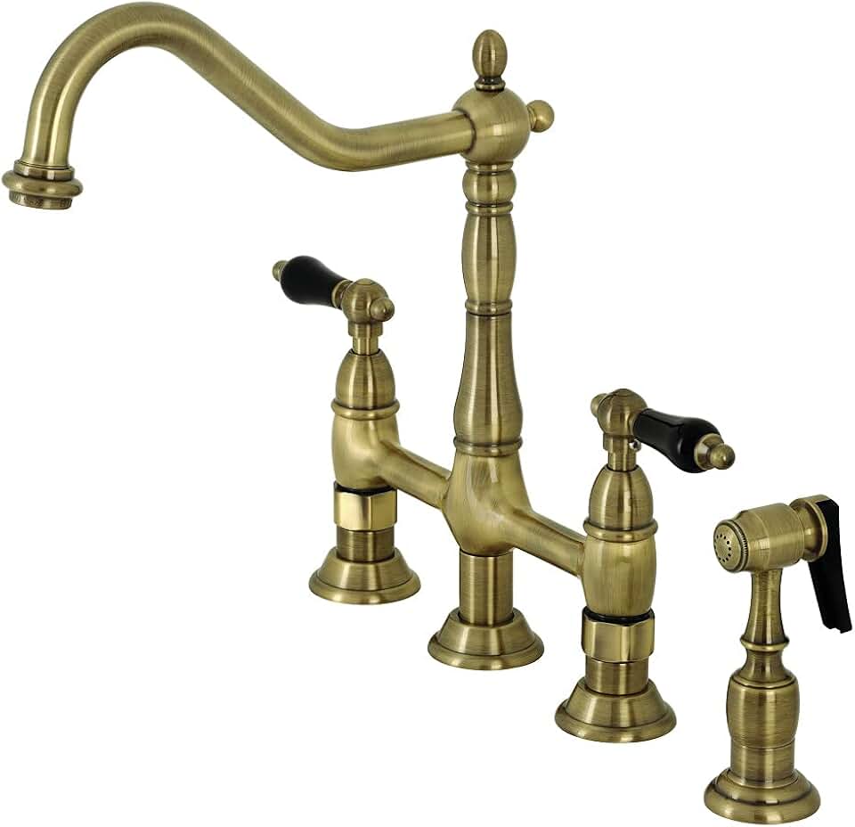 Kingston Brass KS1273PKLBS Duchess Bridge Kitchen Faucet, Antique Brass