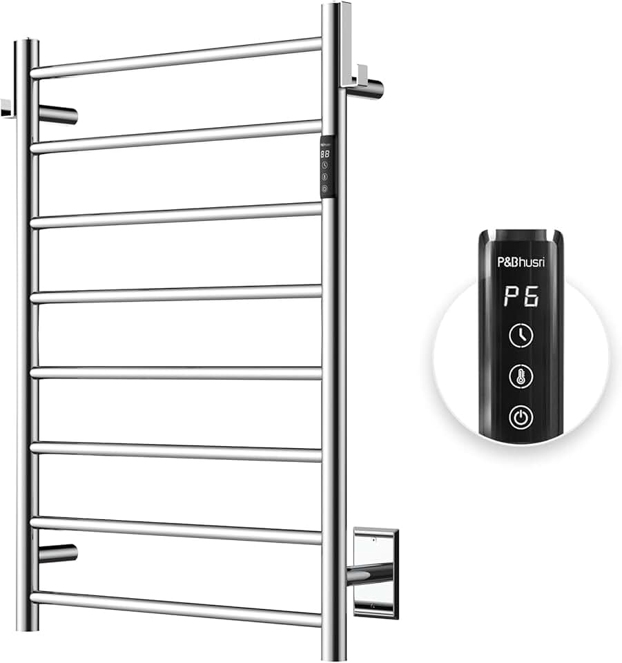 Heated Towel Rack for Bathroom,Wall Mounted Electric Towel Rack with Timer and LED Indicator, 8-Bar Towel Warmer, Stainless Steel Polished, Hard-Wired/Plug-in