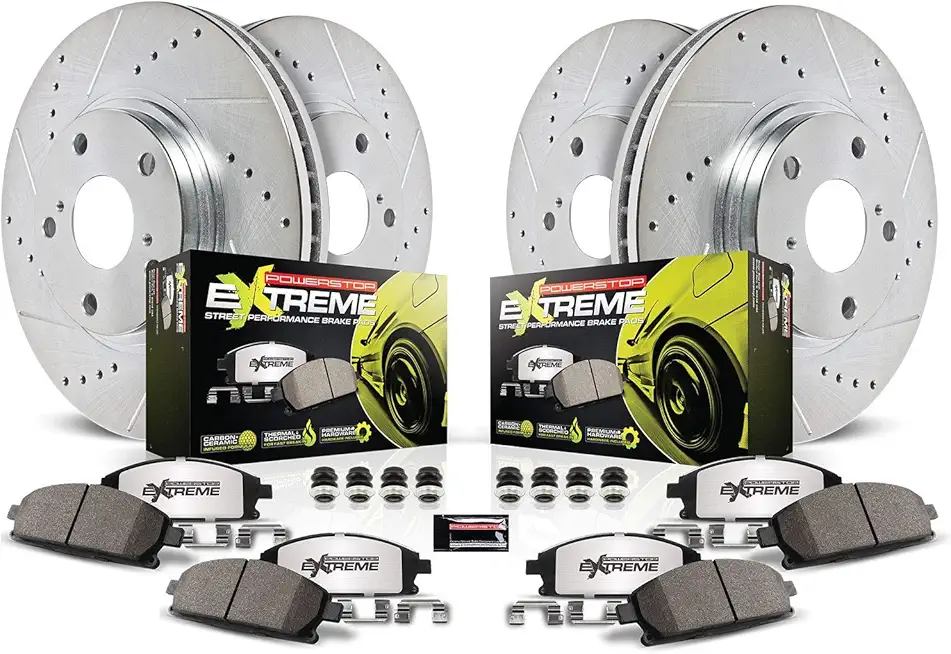 K5958-26 Front and Rear Z26 Carbon Fiber Brake Pads with Drilled and Slotted Brake Rotors Kit For 2012 2013 Jeep Grand Cherokee SRT8 | 2014 2015 2016 2017 Jeep Grand Cherokee SRT