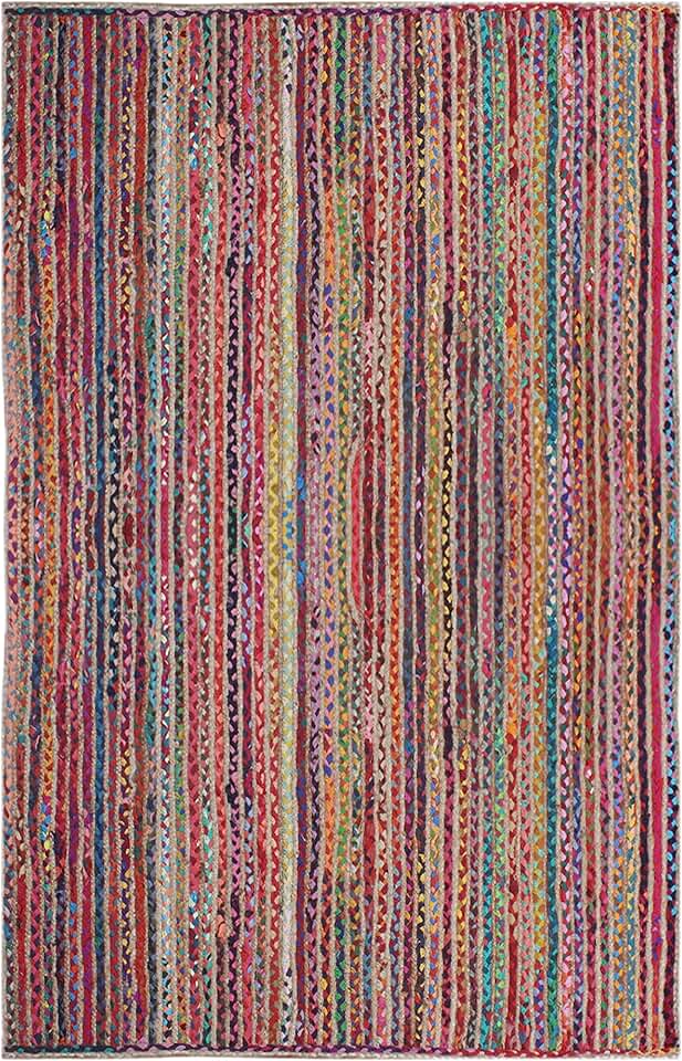Runner - 6x12 Area Rug Kilim Rug Beige & Multicolor Braided Chindi Cotton Jute Rug Indoor Outdoor Rug Flatweave Rug High Traffic Area Home & Foyer Corridor Hallway & Stair Runner