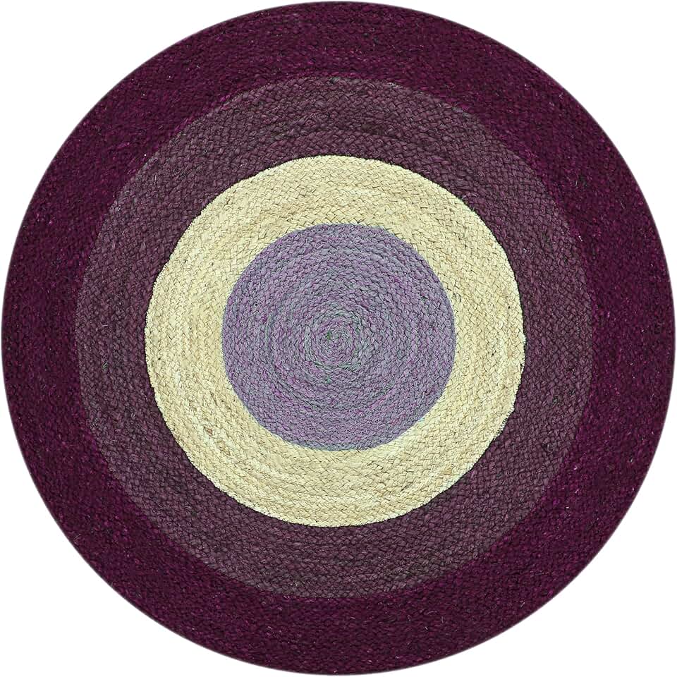 12' Round Rug Kilim Rug Purple & Beige Pattern Braided Jute Rug Indoor Outdoor Rug Flatweave Rug High Traffic Area Dining Table Round Hall Room Round Patio Rug