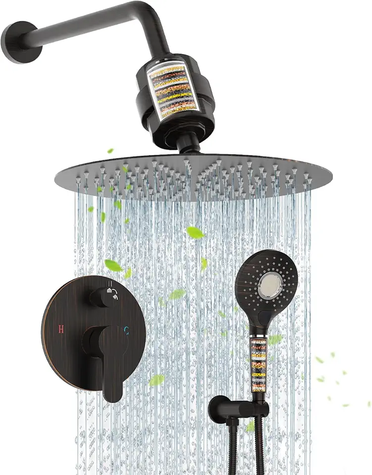 SunCleanse Shower System - 12 Inch Dual Filtered Rainfall Shower Head Combo- High Pressure 3 Spray Mode Showerhead-Included Rough in Valve and Trim Kit, Oil Rubbed Bronze
