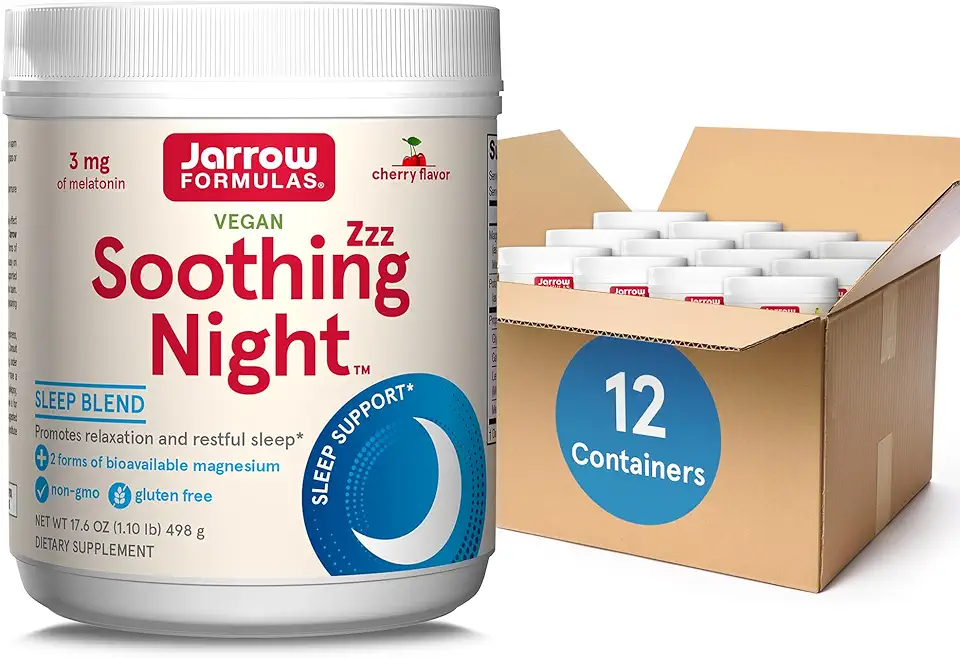 Jarrow Formulas Soothing Night, Cherry Flavor - 1.1 lb - Promotes Nighttime Relaxation & Rest - Includes Magnesium, Melatonin, GABA & Lemon Balm - 60 Servings (Pack of 12)