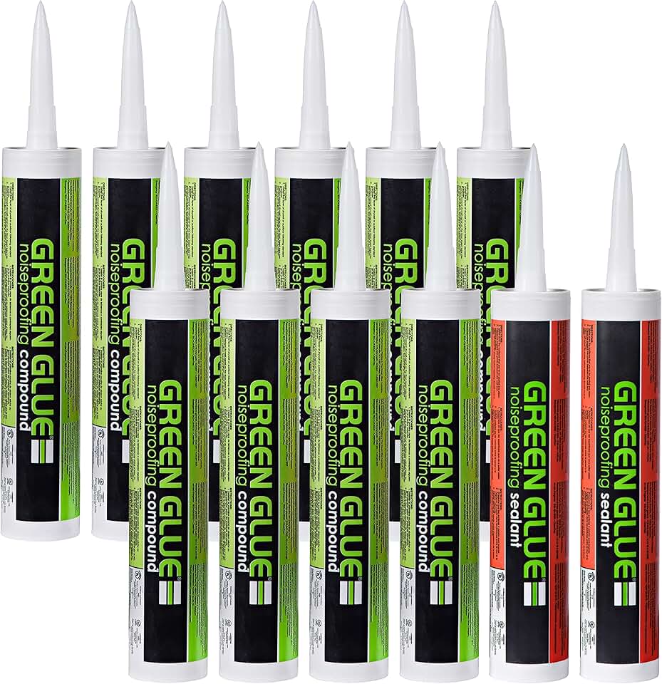Trademark Soundproofing Green Glue Soundproofing Compound and Acoustical Sealant Combo Set - Ten Green Glue Noiseproofing Compound and Two Acoustic Caulk Adhesive Seal
