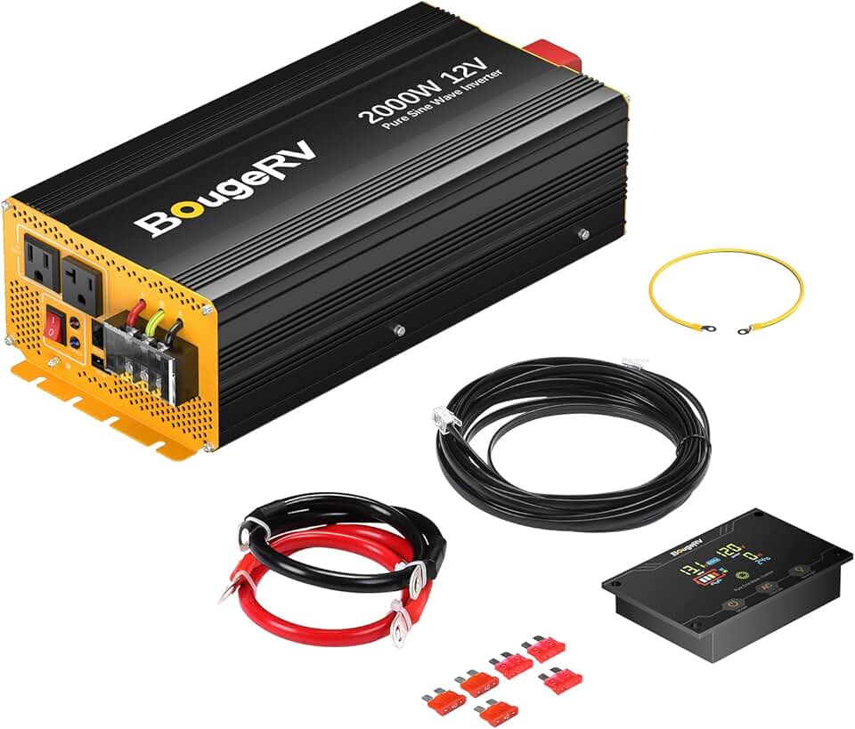 Upgrade 2000W Pure Sine Wave Inverter, Convert DC 12V to AC 110V, Fully 2000W Output, Built-in Bluetooth for BougeRV APP, Wired Remote Controller, Off-Grid Solar Power System, RV, Backup Power