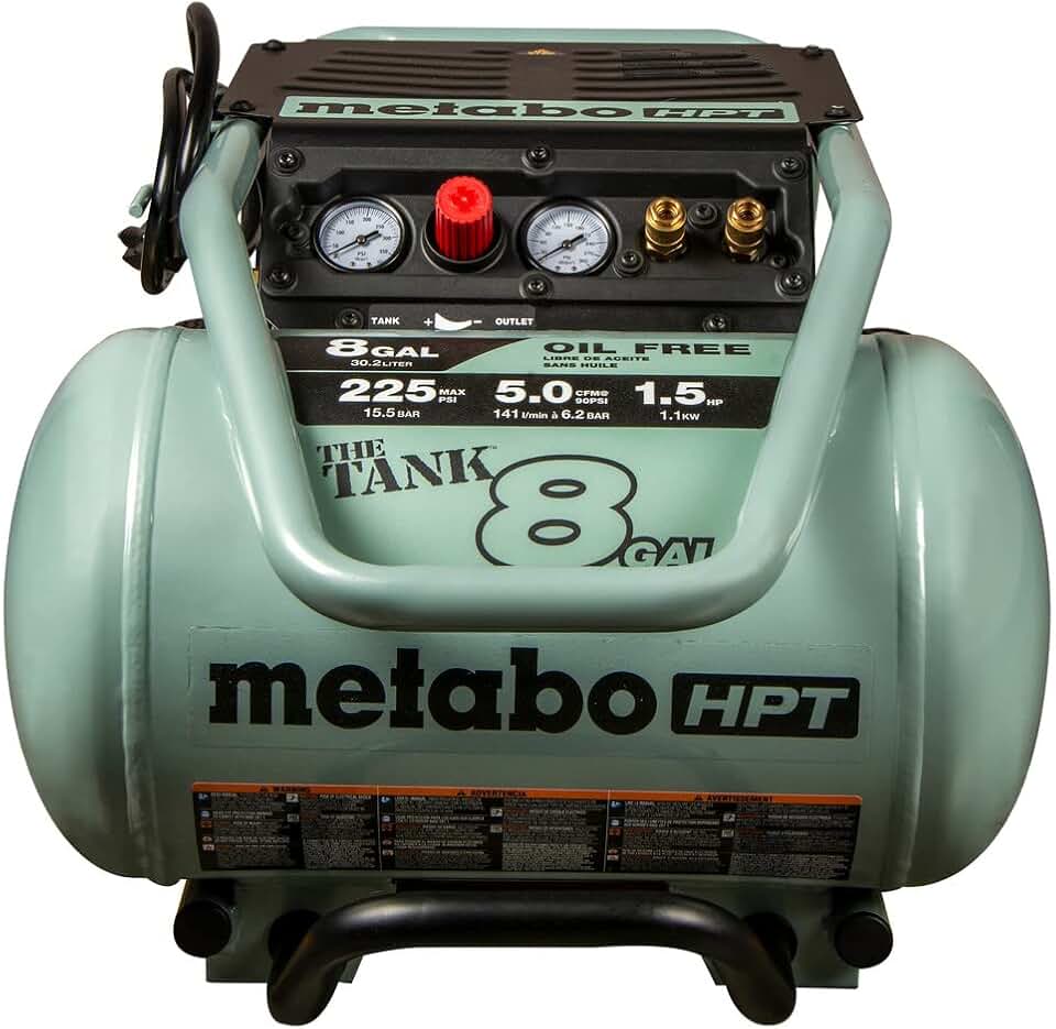 Metabo HPT Air Compressor | THE TANK™ 8-Gal | 225 PSI | 5 CFM @ 90 PSI | Trolley | Oil-Free | EC1315S Gray