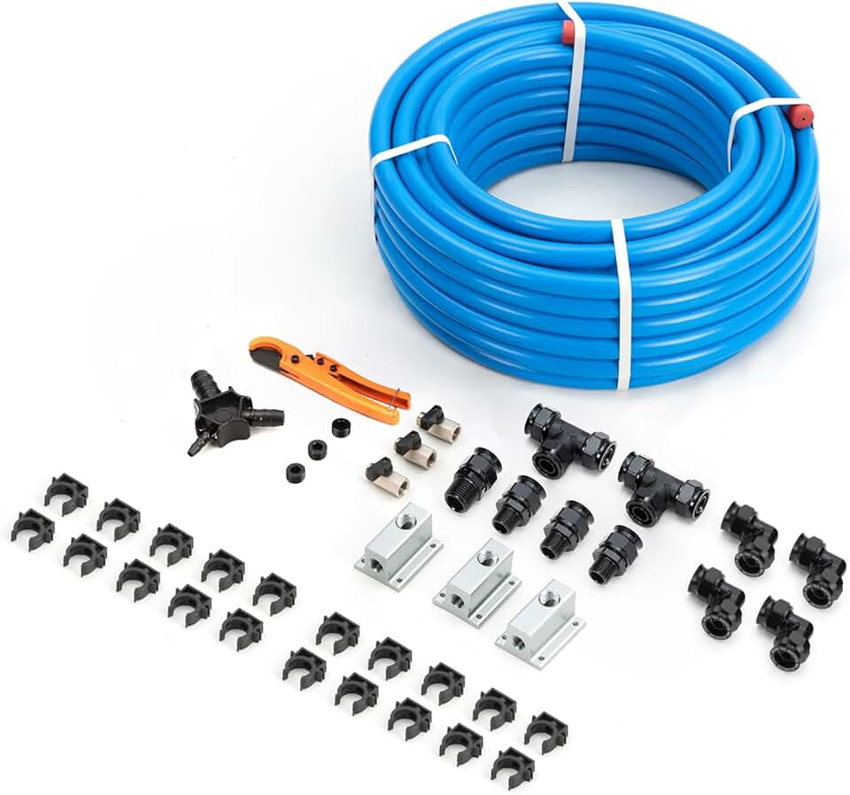 Rapid Air System 3/4“x 100ft 5-Ways Out HDPE Aluminum Air Compressed Piping System with Outlet Blocks, Equal Elbow Fitting for Garage Shop Air Line Kit 200PSI ASTM F1282