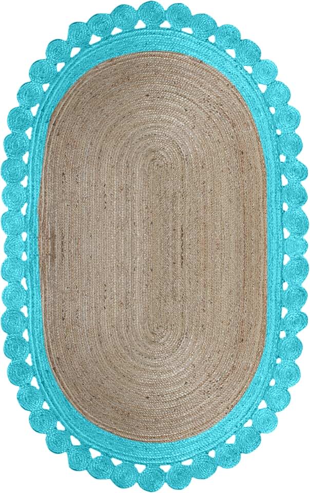 Runner - 5x10 Area Rug Kilim Rug Oval Rug Turquoise Blue & Beige Pattern Braided Jute Rug Indoor Outdoor Rug Flatweave Rug High Traffic Area Home & Foyer Corridor Hallway & Stair Oval