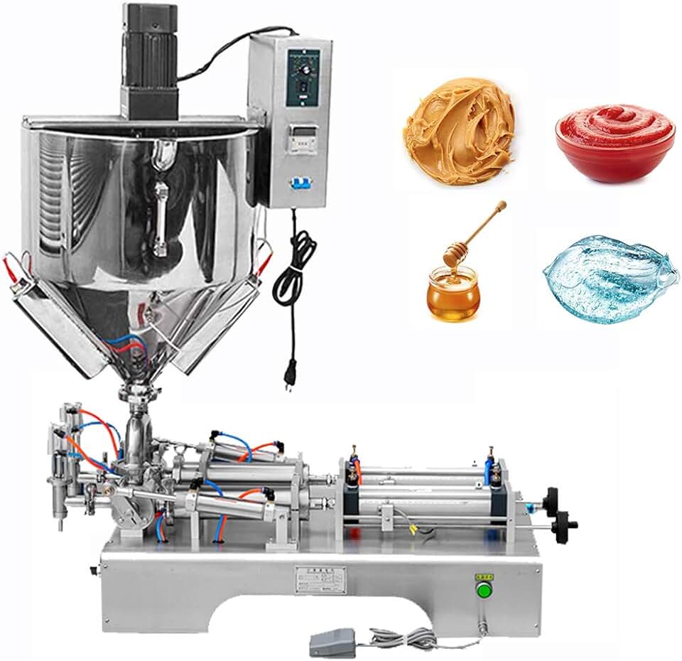 Hanchen Liquid and Paste Filling Machine with Heater and Stirrer 100-1000ml Double Nozzle Pneumatic Piston Filler Semi-Automatic Paste Dispenser for Oil Cream Lotion Honey with CE(100-1000ml)