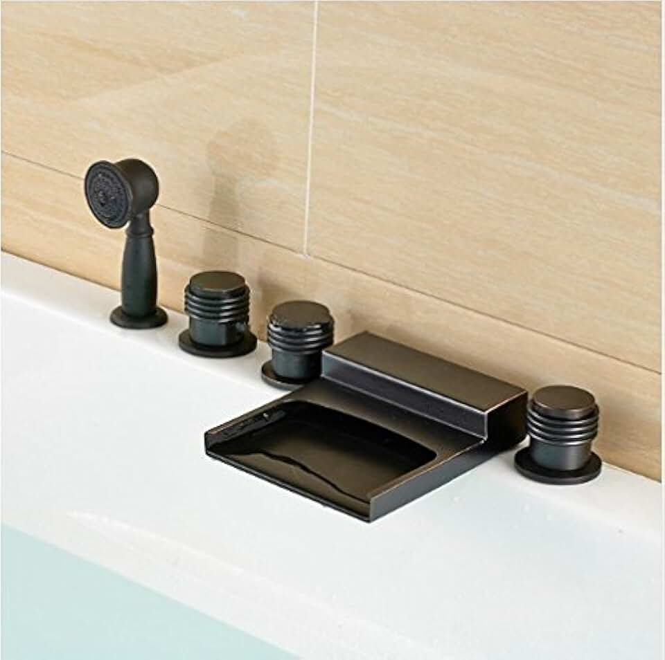 GOWE Oil Rubbed Bronze Widespread 5 Holes Bathtub Filler Faucet 3 Knobs Mixer Tap with Hand Shower