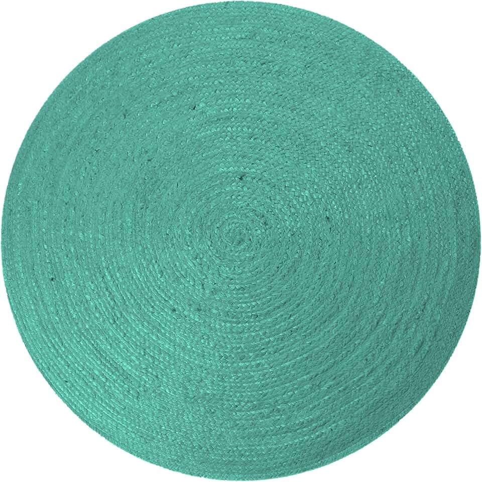 Kilim Rug 7' Round Area Rug Teal Green Circle Area Rug Braided Jute Rug Indoor Outdoor Rug Flatweave Rug High Traffic Area Dining Room Round Enterway Hall Room Patio Rug Round