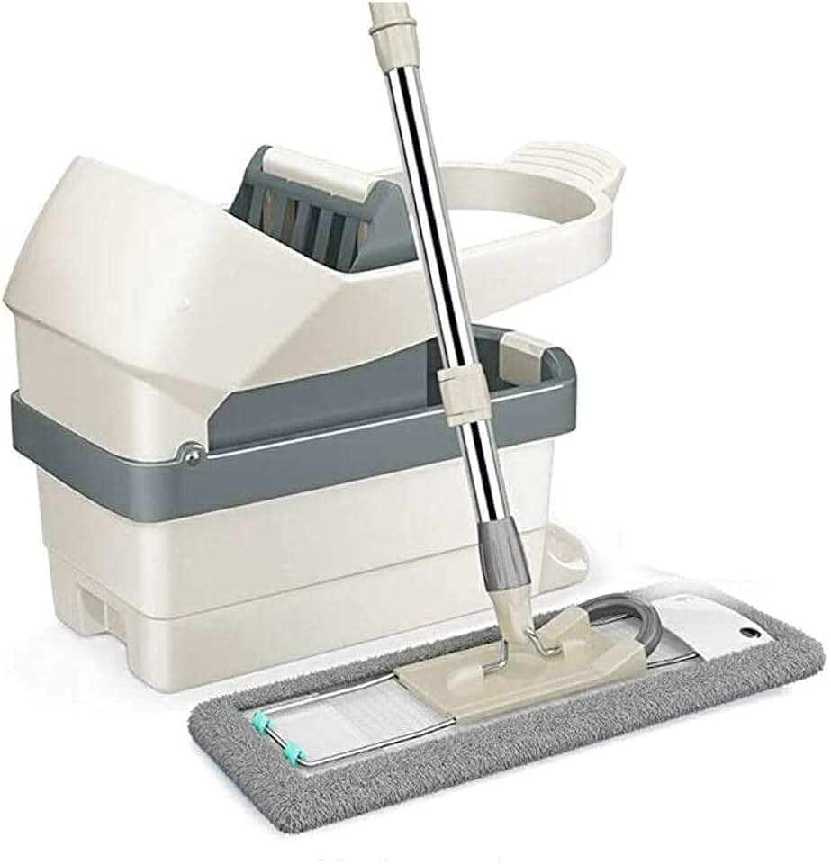 Gray Floor Mop, Professional Flat Squeeze Mop Pads for Wet Dry Floor Cleaning, Stainless Steel Handle and 360 Degree Swivel