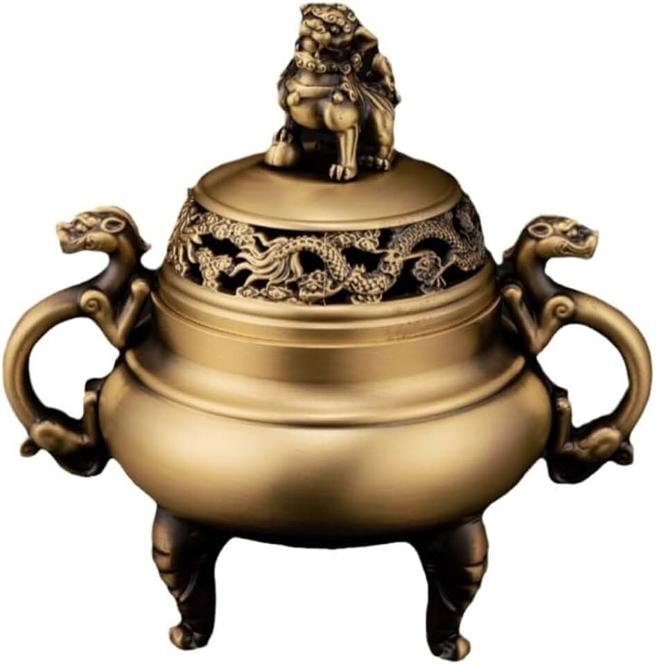 Chinese Brass Incense Burner Like Foot Dragon Phoenix with Cover Copper Incense Burner Dragon