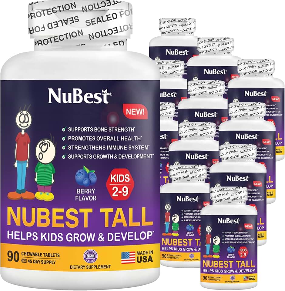Tall Kids - Toddlers Vitamins & Kids Vitamins for Kids Ages 2 to 9 - Healthy Height Growth, Development, Bone Strength, Brain Growth, Eye Health - 90 Chewable Tablets | 12 Pack