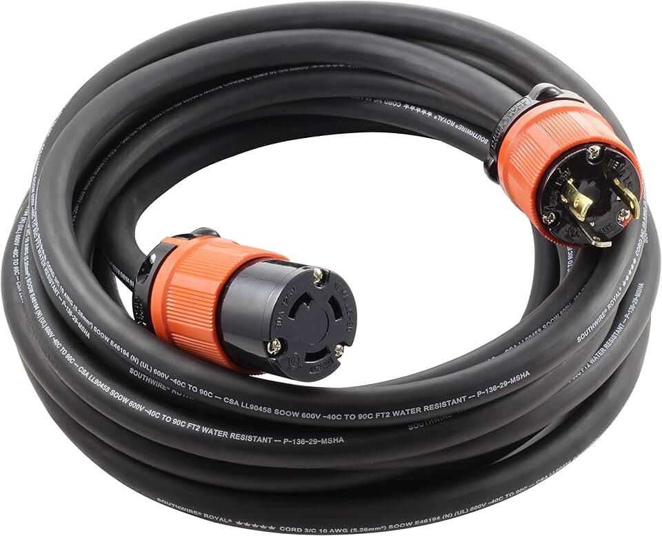 AC WORKS [L530PR] SOOW 10/3 3-Prong NEMA L5-30 30Amp 125Volt Generator Rubber Locking Extension Cord (75FT)