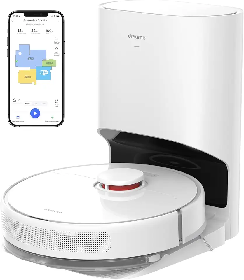dreame D10 Plus Robot Vacuum, 45 Days Self-Emptying Robot Vacuum and Mop Combo, 4000Pa Suction Robotic Vacuum, LiDAR Navigation, APP/Voice Control, Robot Vacuum Cleaner for Pet Hair/Carpet/Hard Floor