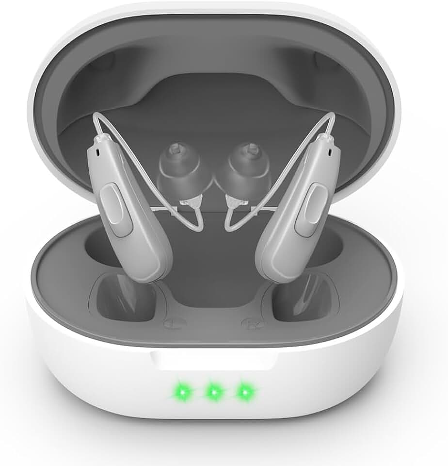 True Hearing Aids (Not Amplifier) 11 Channals Professional Rechargeable Waterproof Hearing Aids for Seniors Serve with Noise Cancelling Hearing Aid with Magnetic Charging Box (Grey)