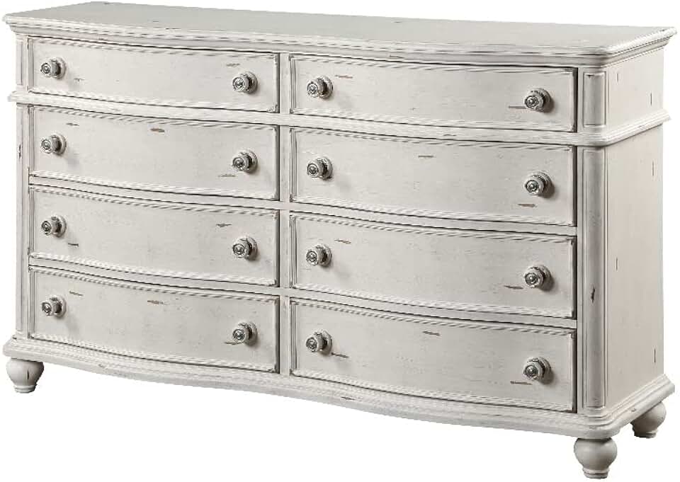 Acme Jaqueline 8-Drawer Wooden Dresser in Light Gray and Antique White