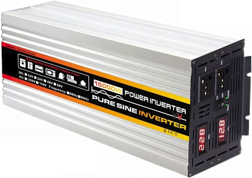 Aecorbir 15000W Peak Pure Sine Wave Power Inverter 12V/ 24V/ 48V/ 60V to 110-220V Large Power Inverter Multi-Protection and LED Display for Solar System Home Outdoor Inverter(12V-110V)
