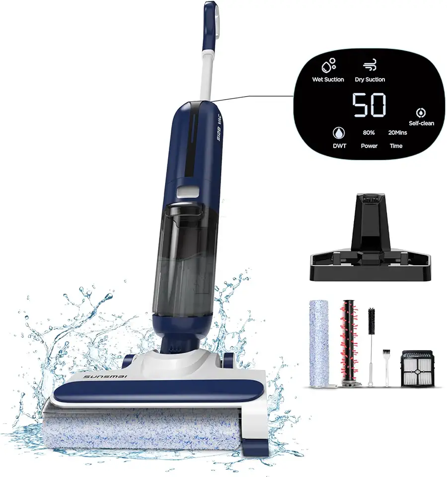 S12B Cordless Wet Dry Vacuum Cleaner with Digital Display, Self-Cleaning System, Lightweight Design, and Long Run Time for Efficient Hard Floor and Carpet Cleaning