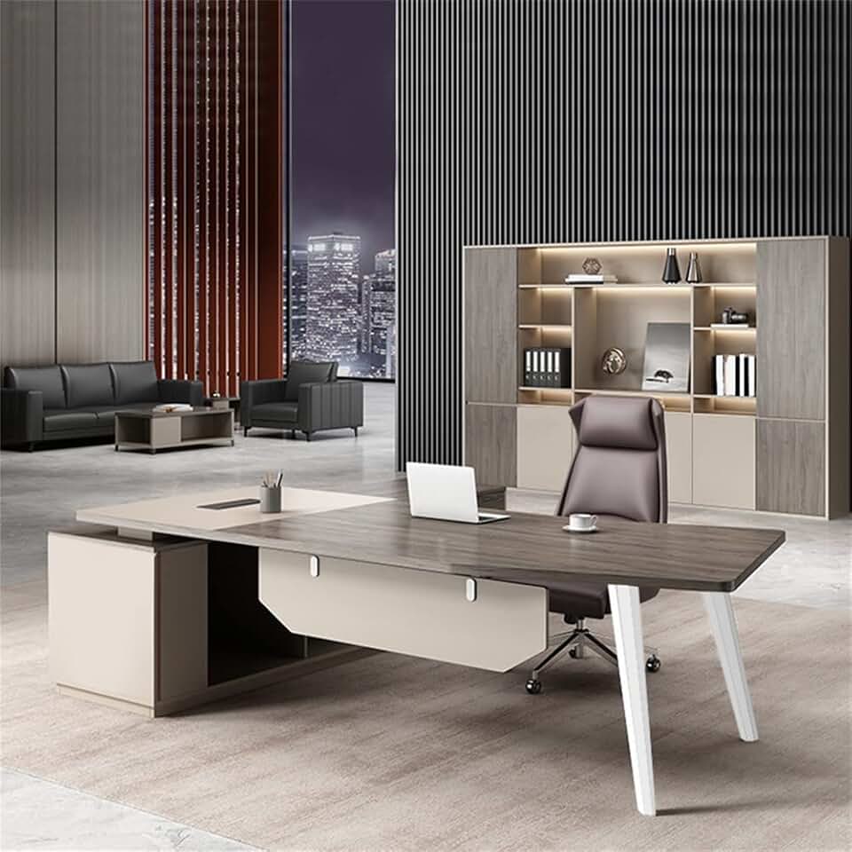 LITFAD L-Shape Executive Desk Artificial Wood Office Desk Cable Management Modern Simple Boss Table Computer Desk - Right Side Cabinet 94.5" L x 63" W x 29.5" H Without Chairs