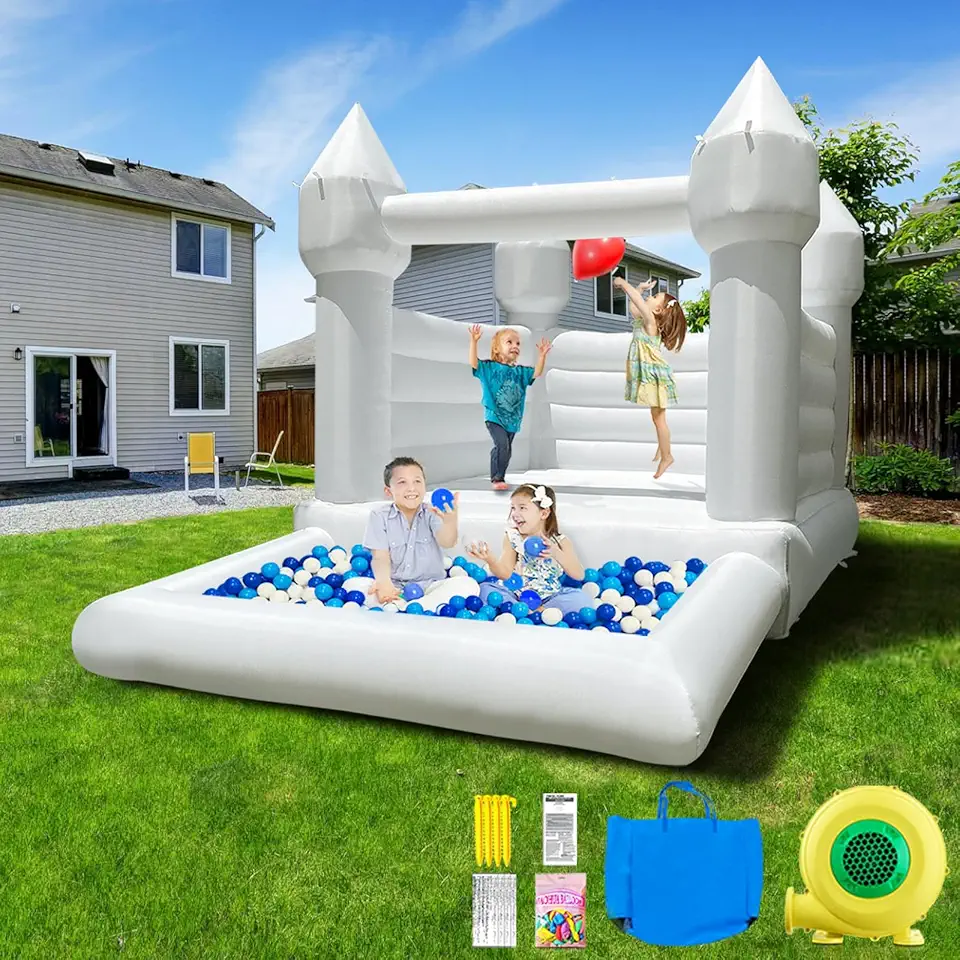 White Bounce House with Ball Pit 120x96x96 inch Commercial Grade ASTM Certified White Bouncy Castle for Memorable Birthday Parties & Event (Light White, 11x8x7.8FT)