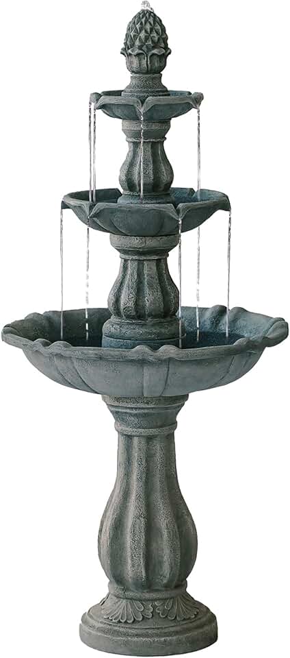 XBrand 3-Tier Freestanding Waterfall Fountain w/Pump & Pineapple Top, 51 Inch Tall, Grey, Large Outdoor Garden Fountain, Ideal for Garden, Porch, and Lawn