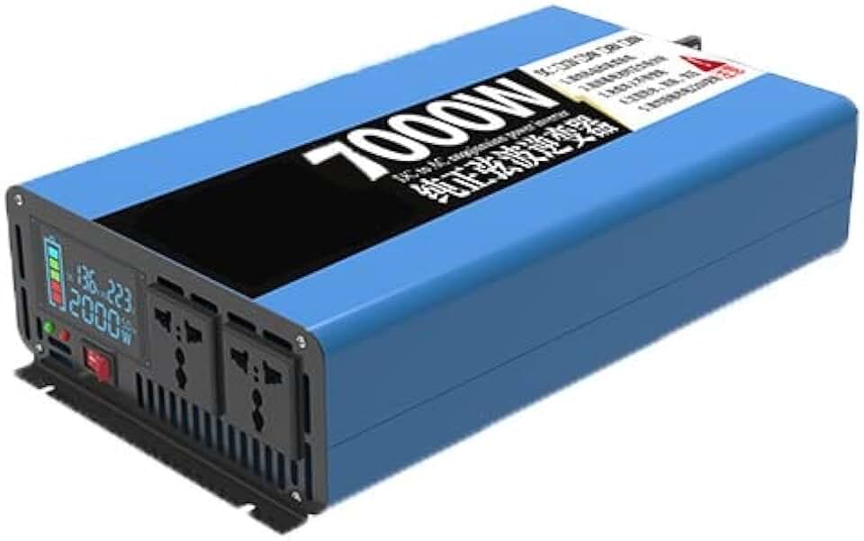 7000W Pure Sine Wave Power Inverter 12V-72V DC to 220V AC Car Plug Adapter Outlet Converter Multi-Protection and LCD Light Display 2 AC Outlets