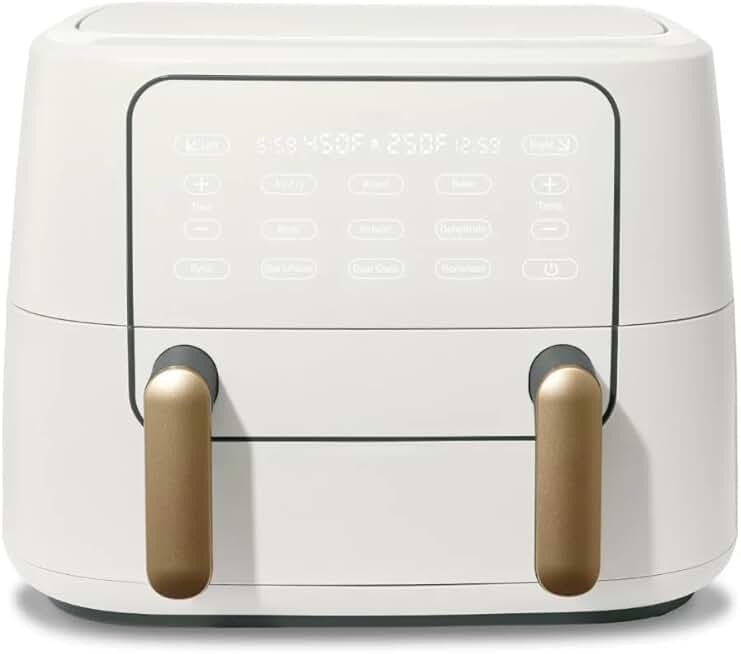 Touchscreen Air fryer, Digital Air fryer with Touch-Activated Display, Kitchenware by Drew Barrymore (9QT, White Icing)
