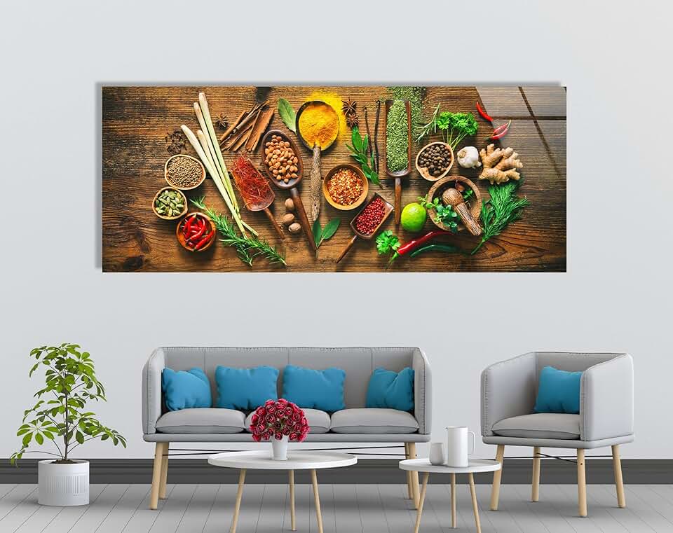 My Photostation.com Tempered Glass Wall Art 43Wx27H'' Panoramic Wall Art-Glass Printing-Kitchen Wall Decor-Spices Wall Art–Mega Size Panoramic Print-Herbs Wall Art