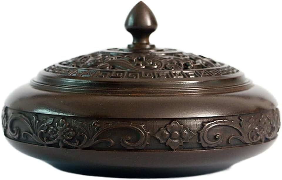 Flat Bottom Carved Copper Incense Burner Antique High Temperature Hand Dyed Incense Burner Chinese Tea