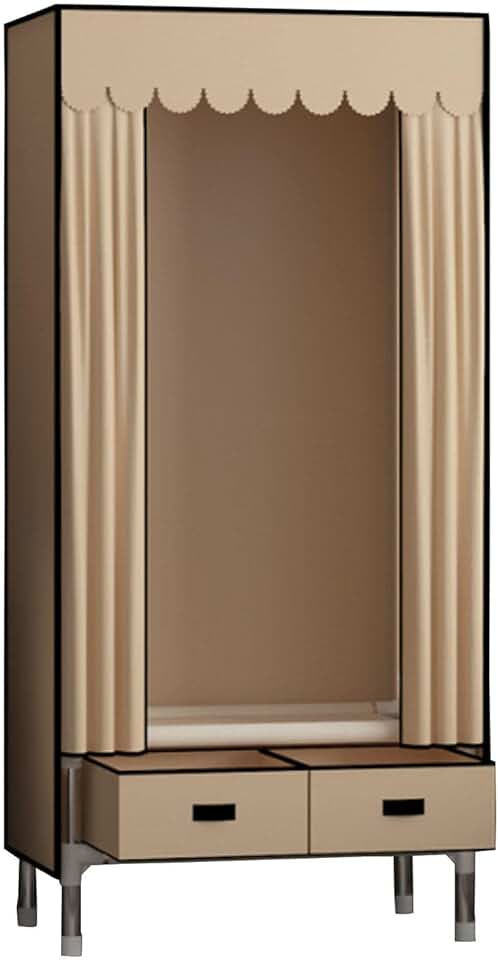 Wardrobe, Portable Canvas Wardrobe Shelves, Fabric Wardrobe with Hanging Rail and 3 Drawers, Clothes Closet Storage Organizer for Bedroom,Brown-70x45x168cm