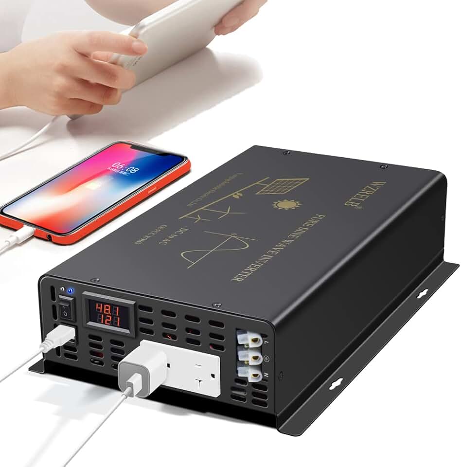 2000W Pure Sine Wave Power Inverter 48VDC to 120VAC 60HZ Dual AC Outlets 2× 2.4A USB Port&Hardwire Terminal Off-Grid Solar Converter RV Trucks Home