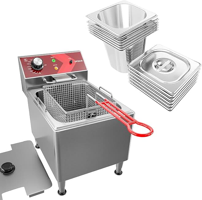 12L commercial Fryer with Basket 120V 1800W and 6-Pack 6 Inch 1/6 Size food container with lids for Commercial Supplies