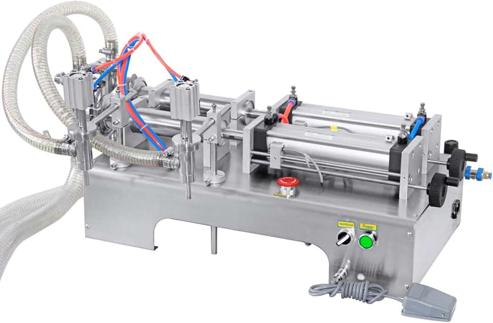 Hanchen Double-Nozzle Liquid Filling Machine Pneumatic Liquid Filler Auto and Semi-Auto Horizontal Piston Filler for Beverage, Oil, Perfume, Detergent, Wine (100-1000ml)